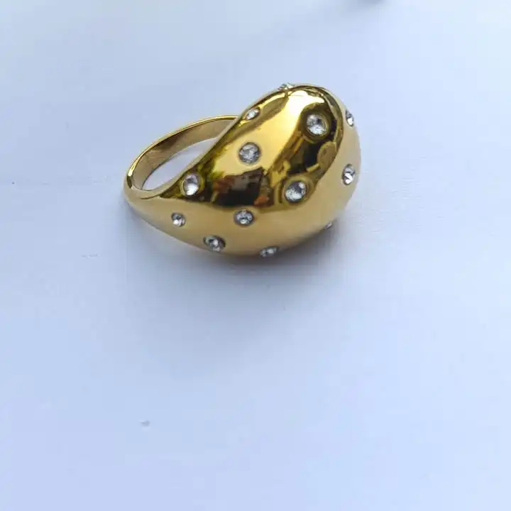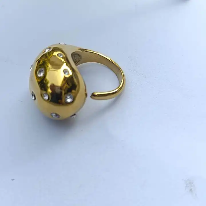 Stainless steel bubbly zirconium dotted adjustable ring Antitarnish and water proof