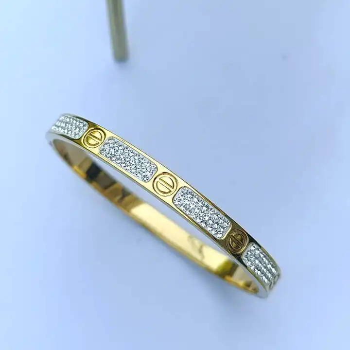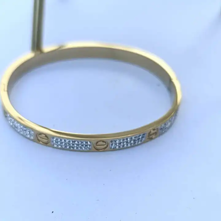 Des stainless steel premium design Cartier zirconium cuff Anti tarnish Water proof Side lock openable