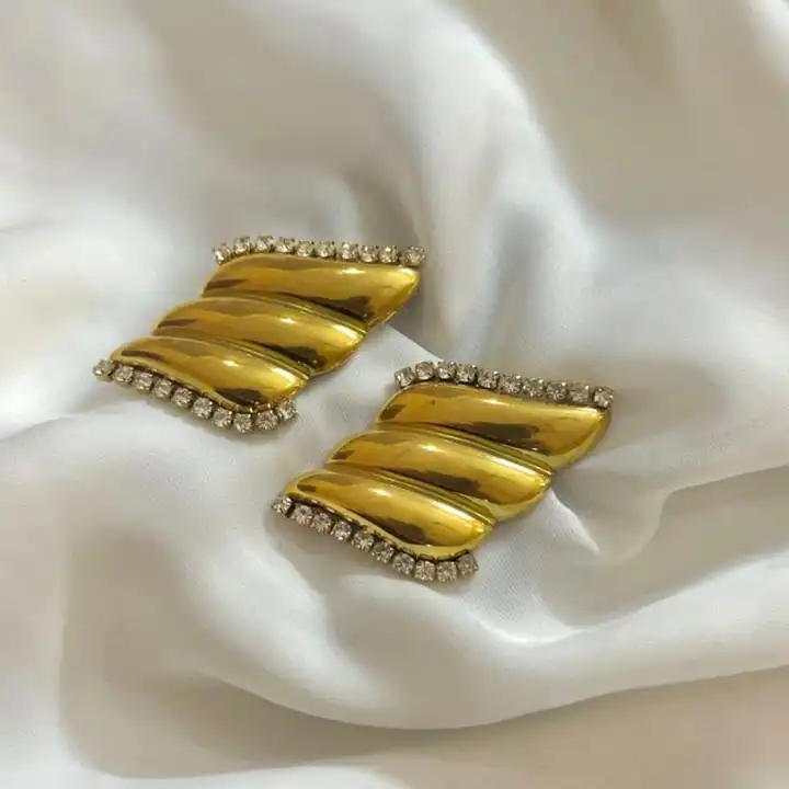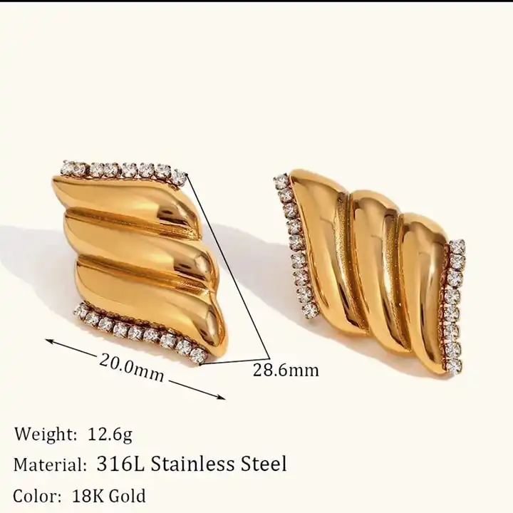 Stainless steel trendy zircon studded tops Anti tarnish & Water proof